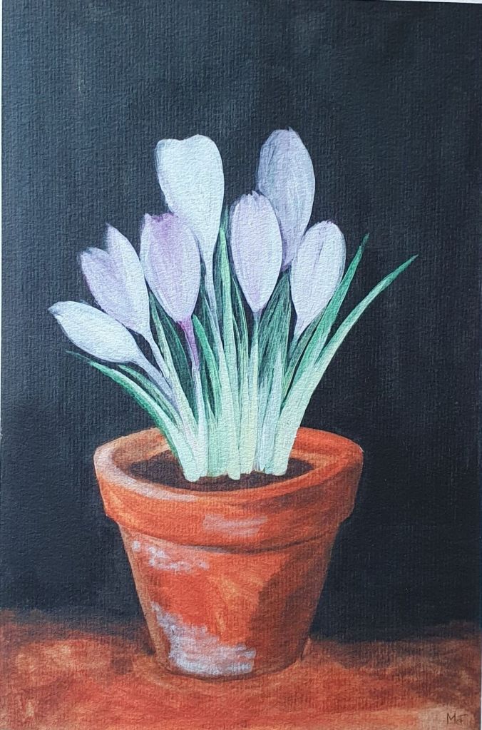 Krokusse, Acryl auf Papier, 30×20