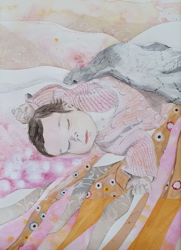 Hingabe, 2021, Acrylfarbe und Collage auf Leinwand, 70x50cm