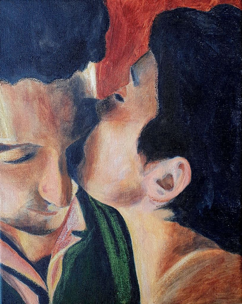 Trois bisous, 10/2025, Acryl auf Leinwand, 3 x 30 x 24 cm